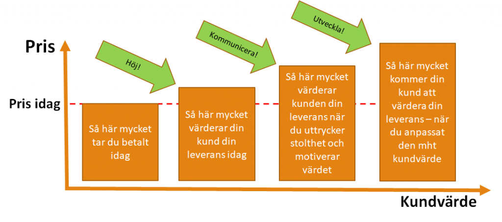 Jag är övertygad om att när du och dina medarbetare lyckas ta lite mer betalt, och förstår att detta drivs av kundvärde, så blir ni lite stoltare. Den stoltheten fortsätter ni att använda i kommunikation med era kunder, som upplever värdet högre. Det blir en positiv spiral som möjliggör fortsatt utveckling för ökat kundvärde!