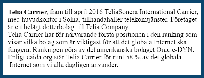 Idag är det svenska företaget världsledande och ligger på första plats i den globala Internet-backbone rankingen av världens cirka 70 000 nät.
